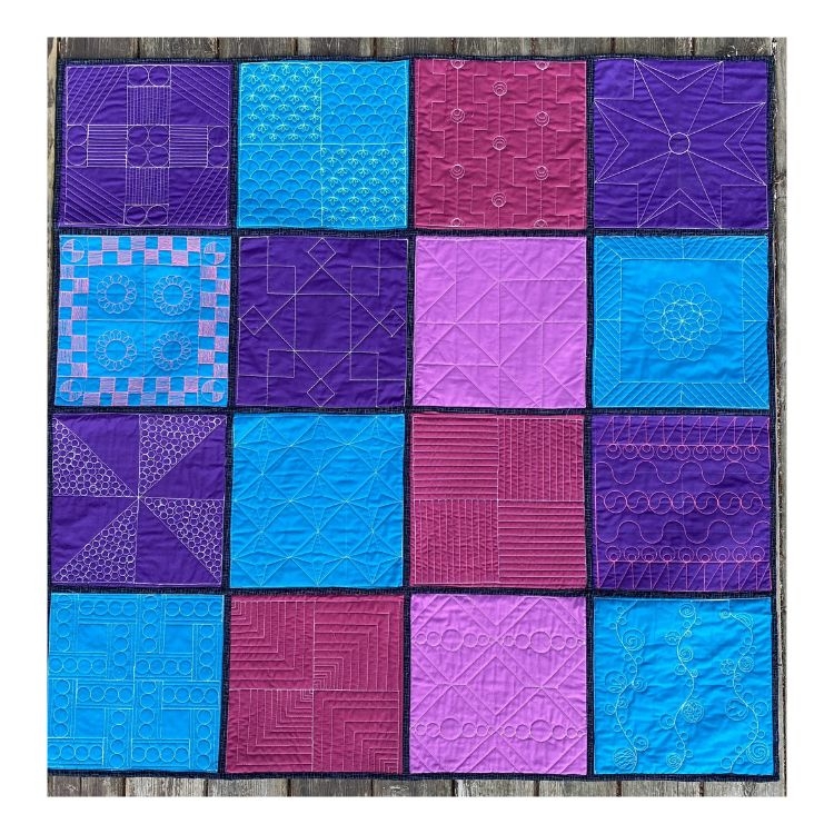 In this on demand class, you will receive over 9 hours of instruction to help you create a beautiful quilt and learn some awesome quilt designs using two machine quilting rulers (templates)! We will start by showing you how to mark your blocks, carry on to detailed instructions on how to stitch 16 different quilt blocks (finished size 12 x12) and then how to assemble them all in a quilt using sashing. Each block is filmed on either a sit down longarm or on a domestic machine. In the class, Edgie 6 and Cheezie from Silly Moon Quilting Co. are used, but you can use similar rulers if you have them.