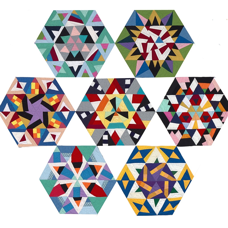 Learn my fun and relaxed approach to doing log cabin-style piecing on unmarked scrap paper triangles;, then turn your triangles into sparkling wall-hangings, pillows, table runners, or the start of a spectacular larger quilt! The class has 30+ videos to guide you through all the stages, with many design options. Because it’s on-demand you can take it at the pace that suits you!
